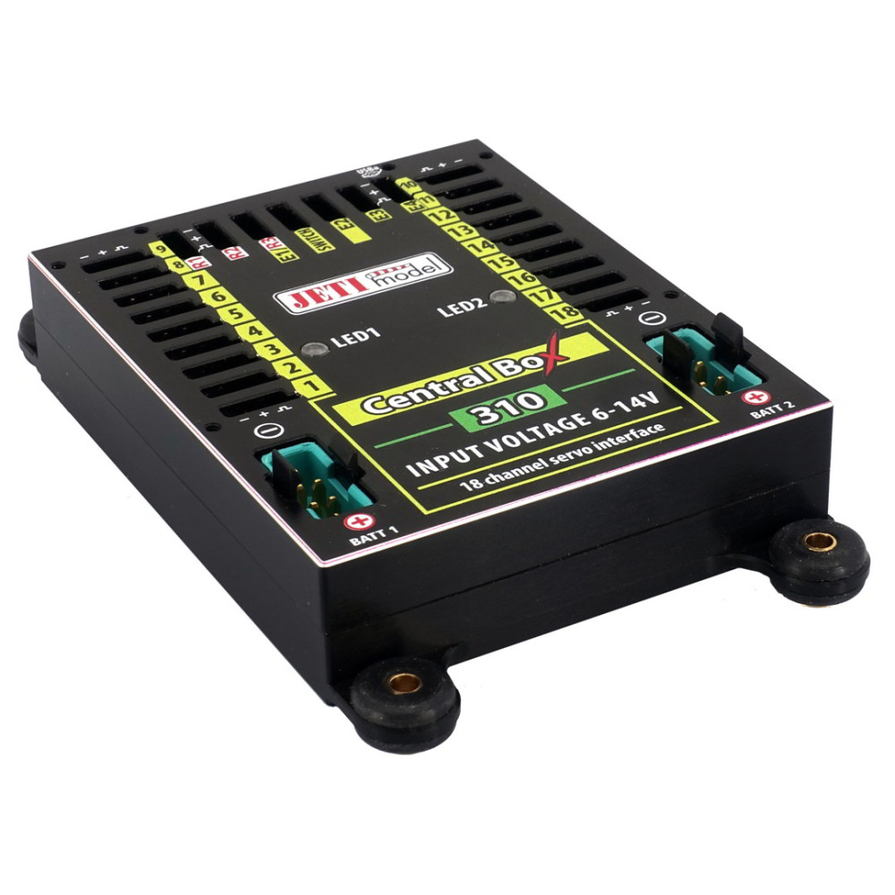 Central Box 310 ponúka plný, neredukovaný výkon z interného BEC priamo na servo výstupy.