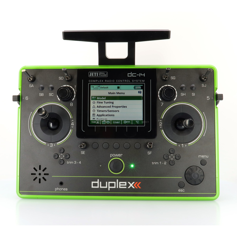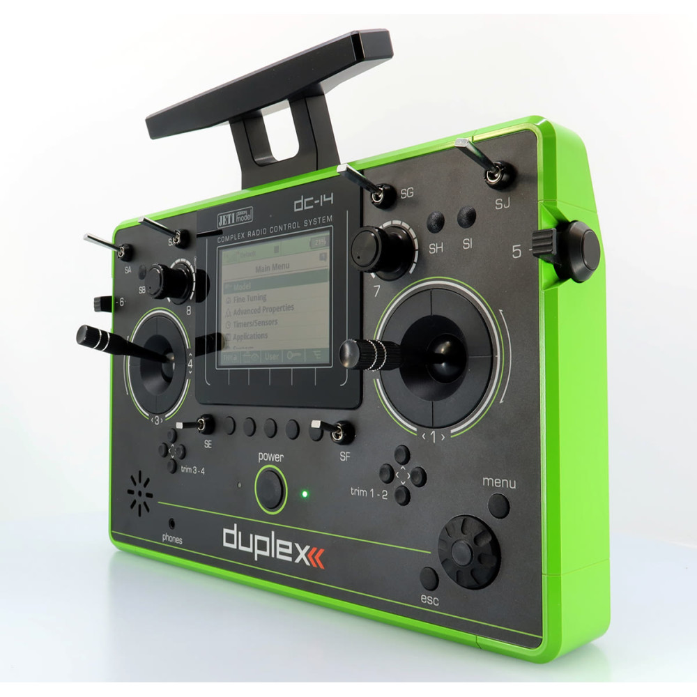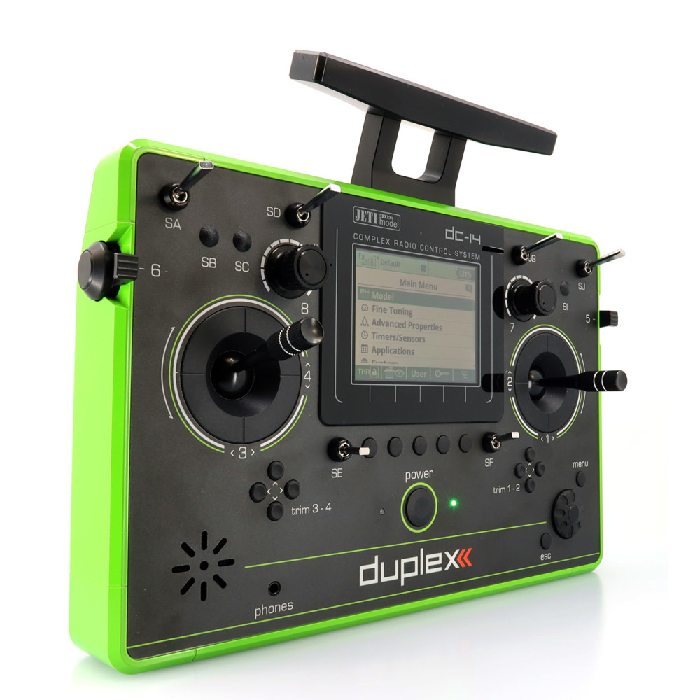 Pultové RC vysielače JETI DC/DS naplno využívajú systém Duplex 2,4 GHz EX a sú navrhnuté s dôrazom na jednoduché ovládanie, dlhú životnosť a spoľahlivosť mechanických častí. Kovový obal chráni elektroniku aj povrch, krížové ovládače sú uložené v ložiskách a používajú Hall magnetické senzory pre presný a plynulý chod.