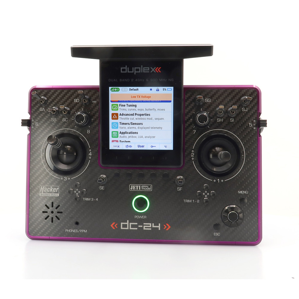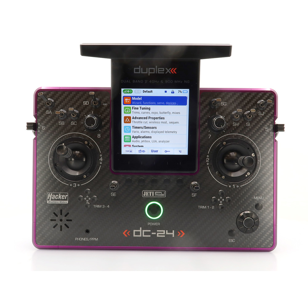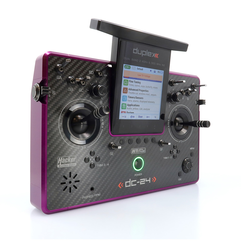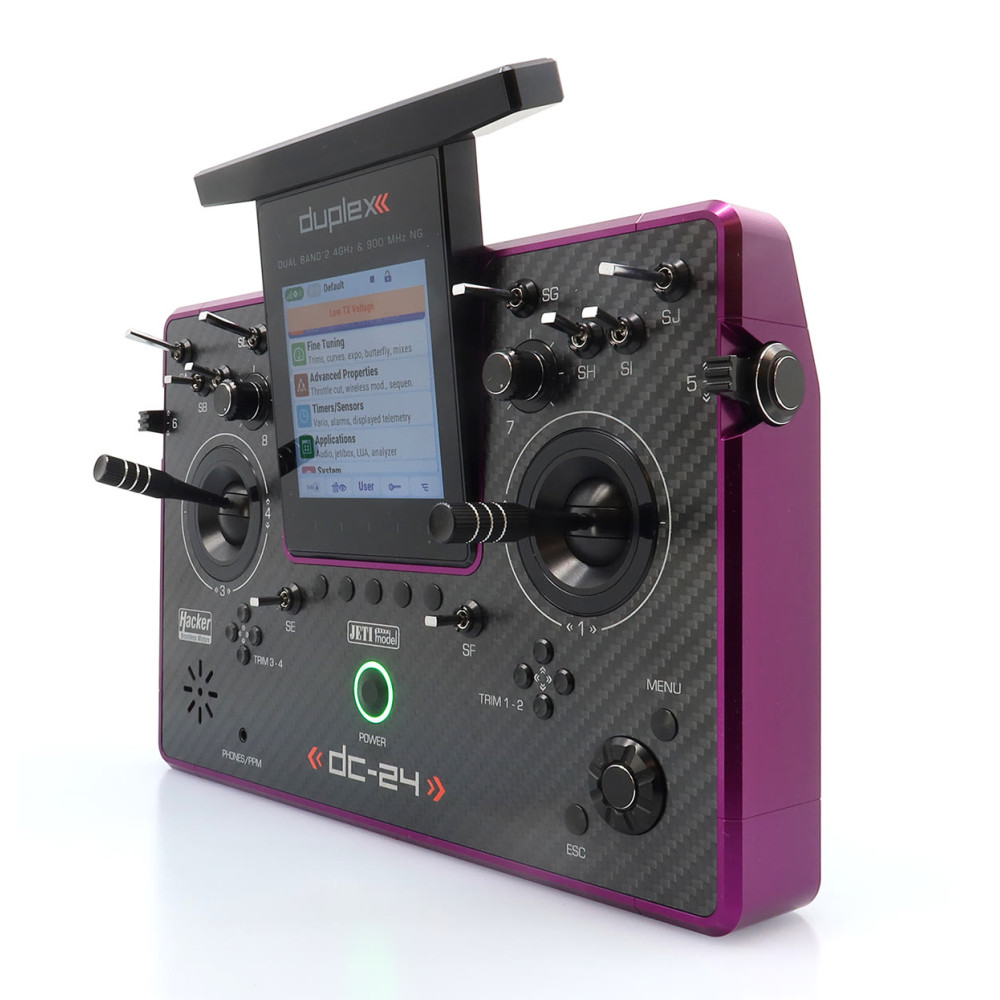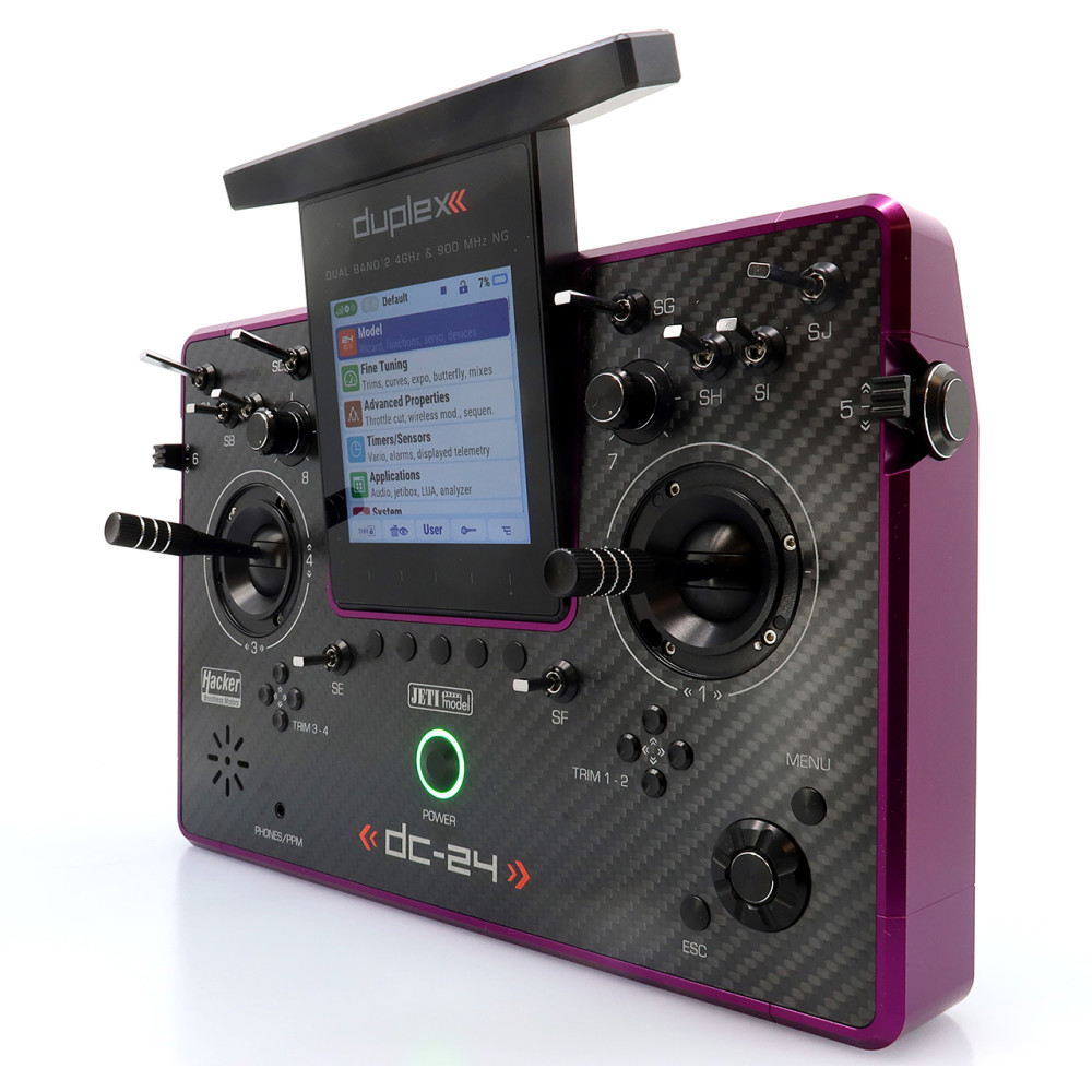 Vysielač JETI DUPLEX DC-24II Carbon Line – fialový elox (Rev.2)