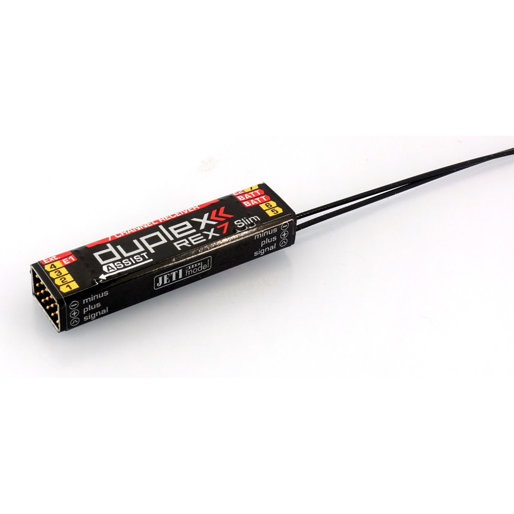 7-kanálový tenký prijímač so stabilizáciou pre montáž v úzkych trupoch modelov F3J, F5J atď. Kompaktné rozmery a možnosťou rozšírenia funkcie stabilizačného systému ASSIST o vário a výškomer z neho robia jeden z najpopulárnejších typov. Prijímač má dva užívateľsky nastaviteľné výstupy E1 a E2 s možnosťou nastavenia pre servo, JETIBOX/Sensor EX, PPM výstup, PPM vstup, EX Bus výstup, UDI výstup, S.BUS. Možnosť priameho pripojenia až troch telemetrických senzorov. Integrovaný systém ASSIST je pokročilý stabilizačný systém so širokou škálou používateľských nastavení pre modely lietadiel a koptér