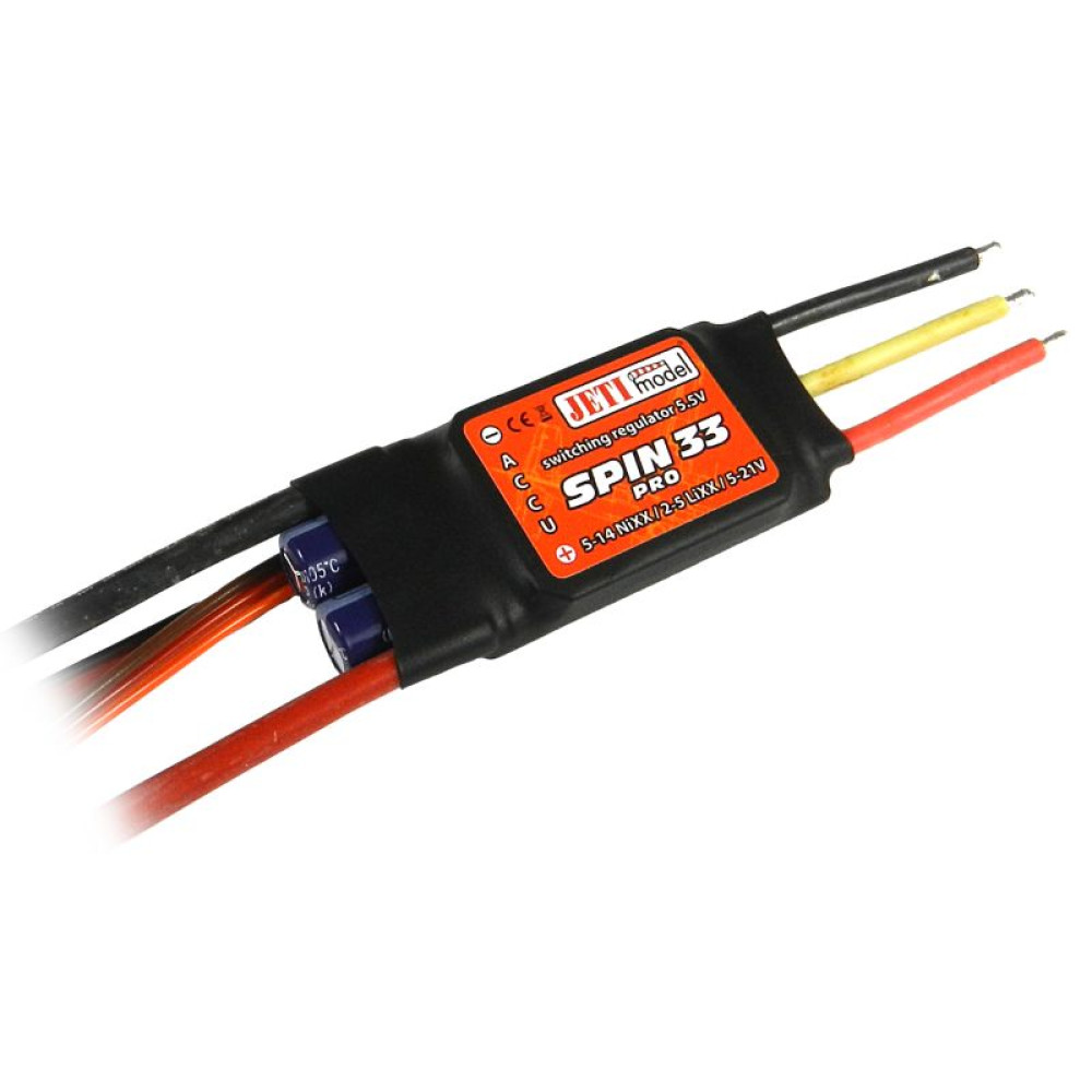 SPIN 33 PRO je vysoko univerzálny striedavý elektronický regulátor otáčok určený pre modely lietadiel, vrtuľníkov a ďalšie RC aplikácie. Patria do pokročilej rady SPIN PRO, ktorá ponúka výrazne rozšírené možnosti nastavení a programovania v porovnaní s predchádzajúcimi regulátormi série SPIN.