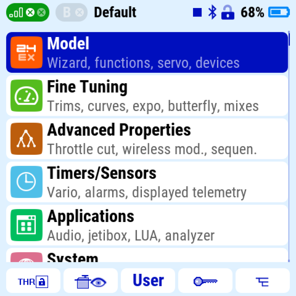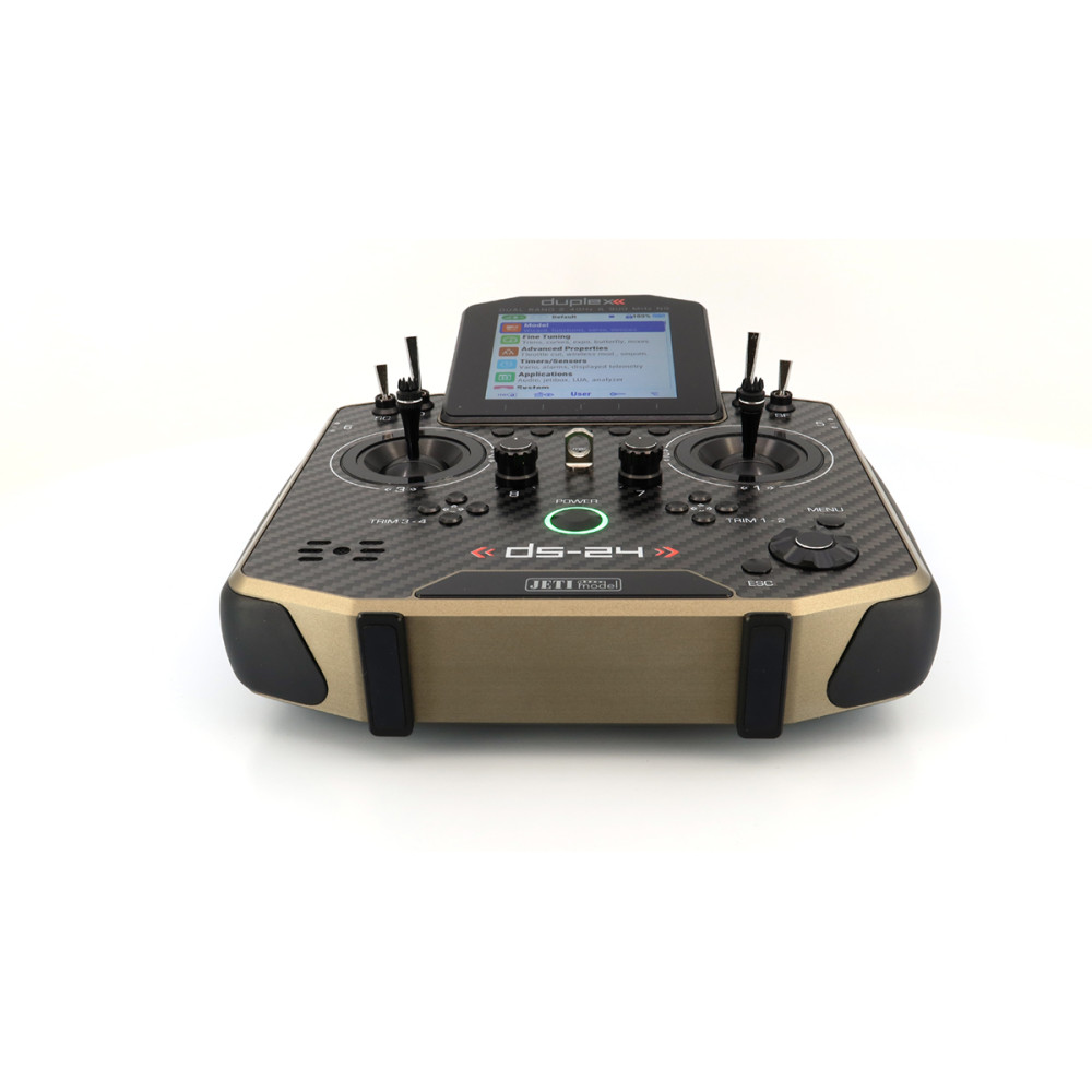Palcový (DS) vysielač JETI DUPLEX DS-24II druhej generácie prináša nadčasový dizajn s prepracovaným a ľahším rámom, nové grafické rozhranie JUi2, väčší a jasnejší 4" displej a výkonnejší hardvér pre plynulú prácu. Podporuje Bluetooth (vrátane bezdrôtových slúchadiel a online telemetrie cez smartfón), má Wi-Fi modul pre online aktualizácie, a USB-C na nabíjanie aj pripojenie k PC/Mac. Systém DUPLEX 2.4 GHz je plne kompatibilný s Duplex ekosystémom a súčasťou je aj záložný systém 900 MHz NG.