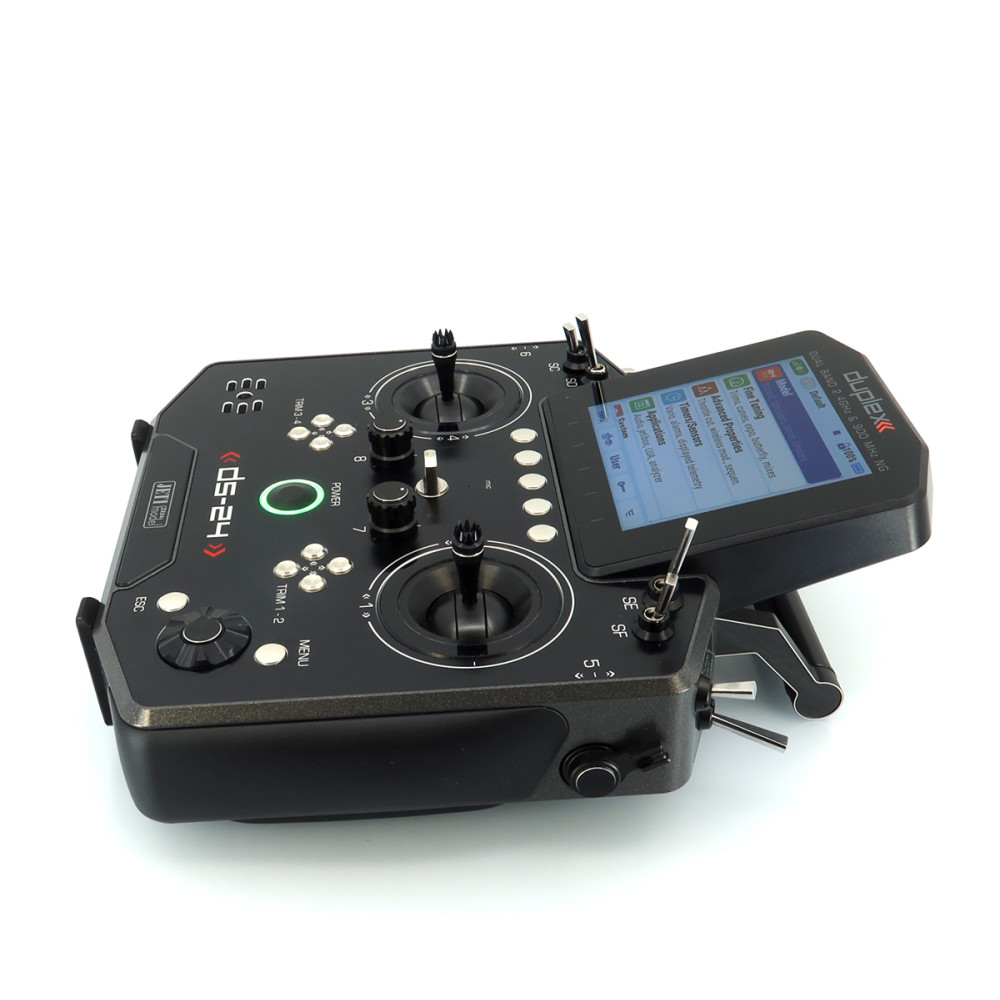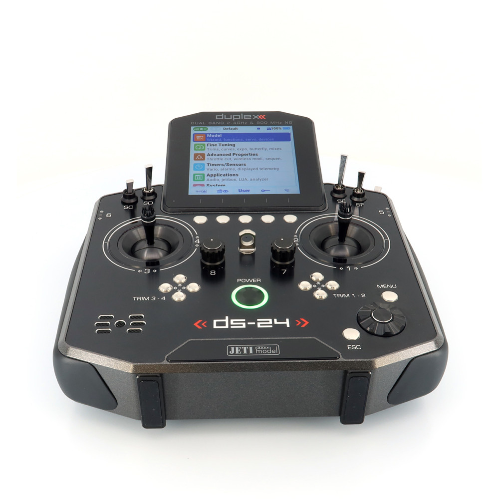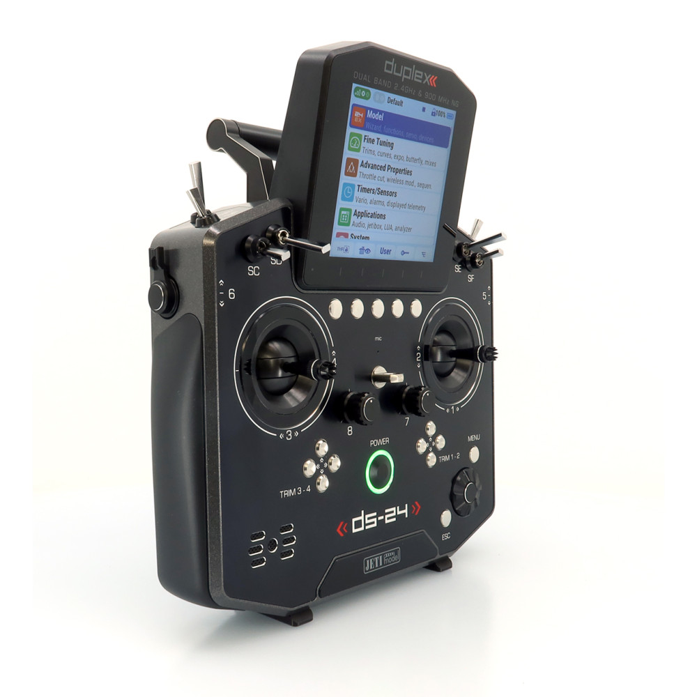Palcový (DS) vysielač JETI DUPLEX DS-24II druhej generácie prináša nadčasový dizajn s prepracovaným a ľahším rámom, nové grafické rozhranie JUi2, väčší a jasnejší 4" displej a výkonnejší hardvér pre plynulú prácu. Podporuje Bluetooth (vrátane bezdrôtových slúchadiel a online telemetrie cez smartfón), má Wi-Fi modul pre online aktualizácie, a USB-C na nabíjanie aj pripojenie k PC/Mac. Systém DUPLEX 2.4 GHz je plne kompatibilný s Duplex ekosystémom a súčasťou je aj záložný systém 900 MHz NG.
